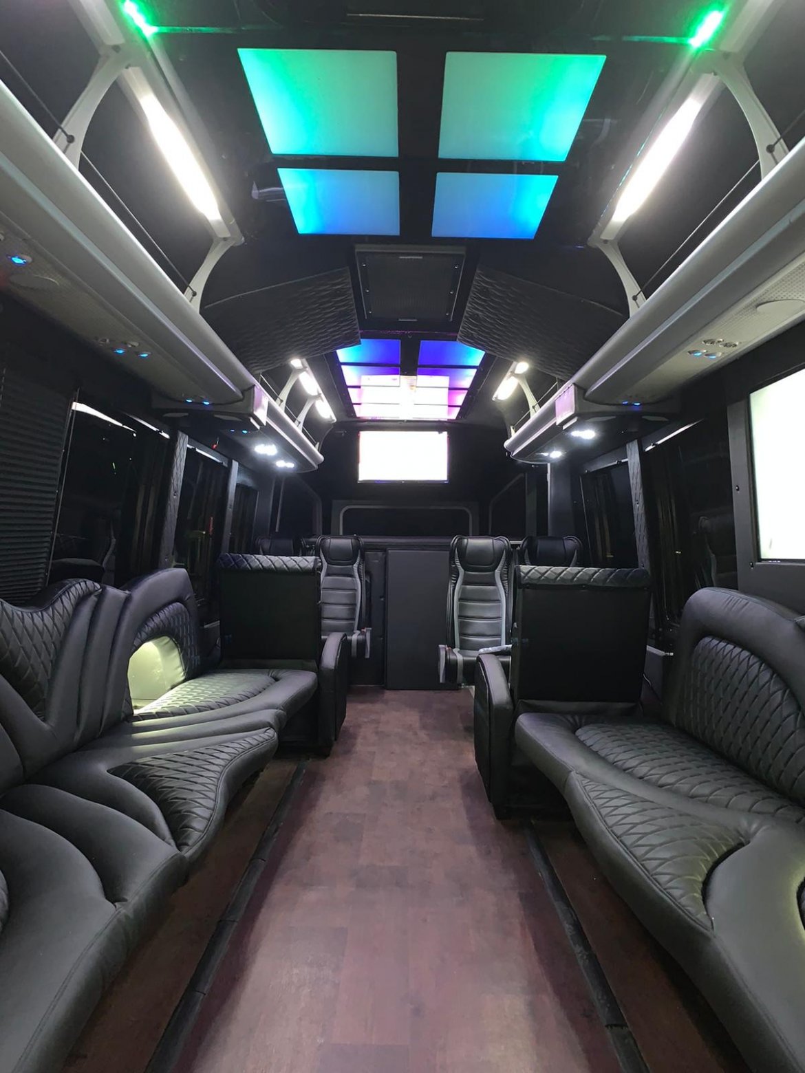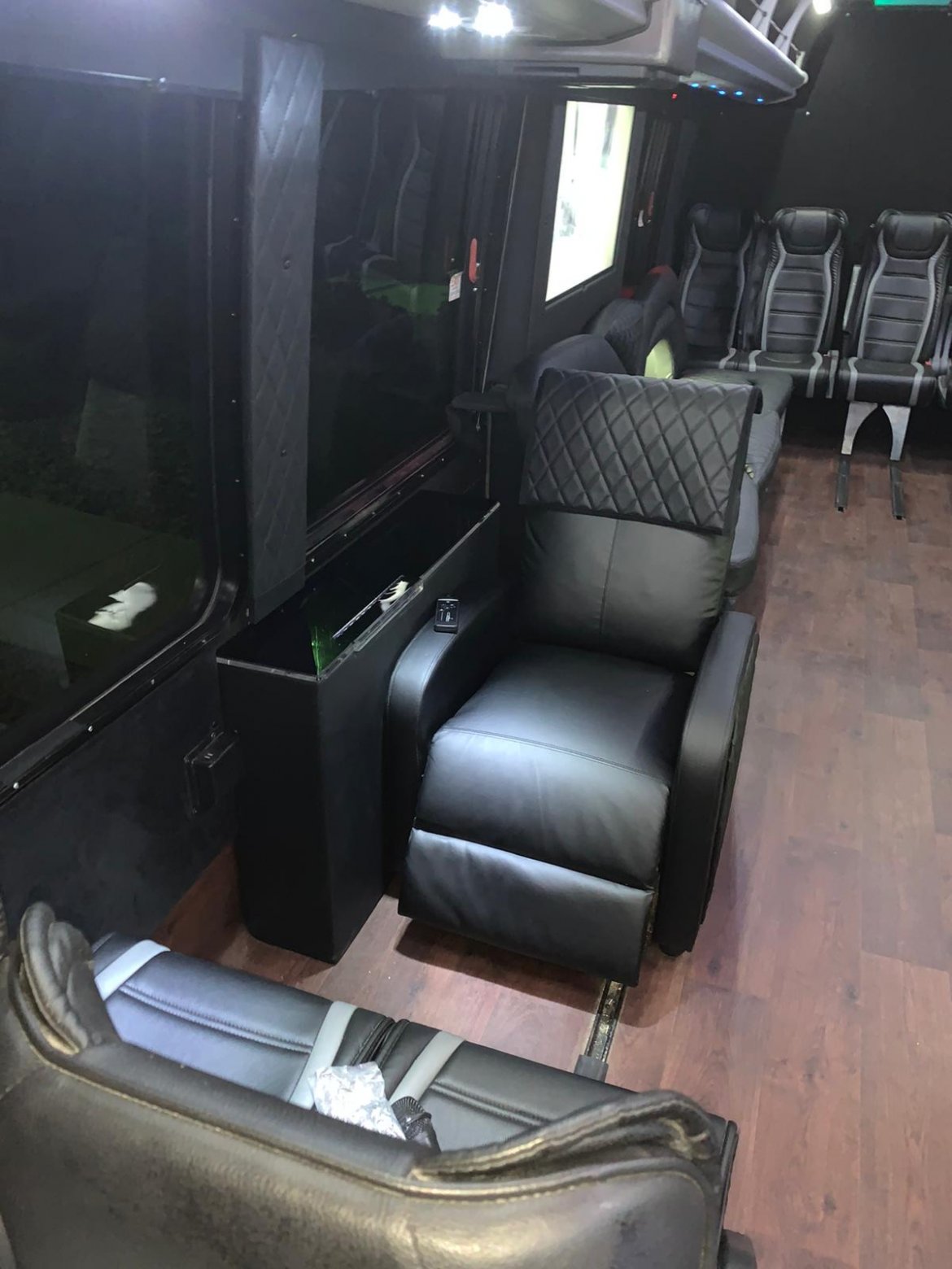 4. The bus huge storage capacity to carry luggage for up to 30 people. Fit 12-15 full-size suitcases in the back, 10 full-size suitcases inside, and fit an additional 20 carry-on bags inside.
