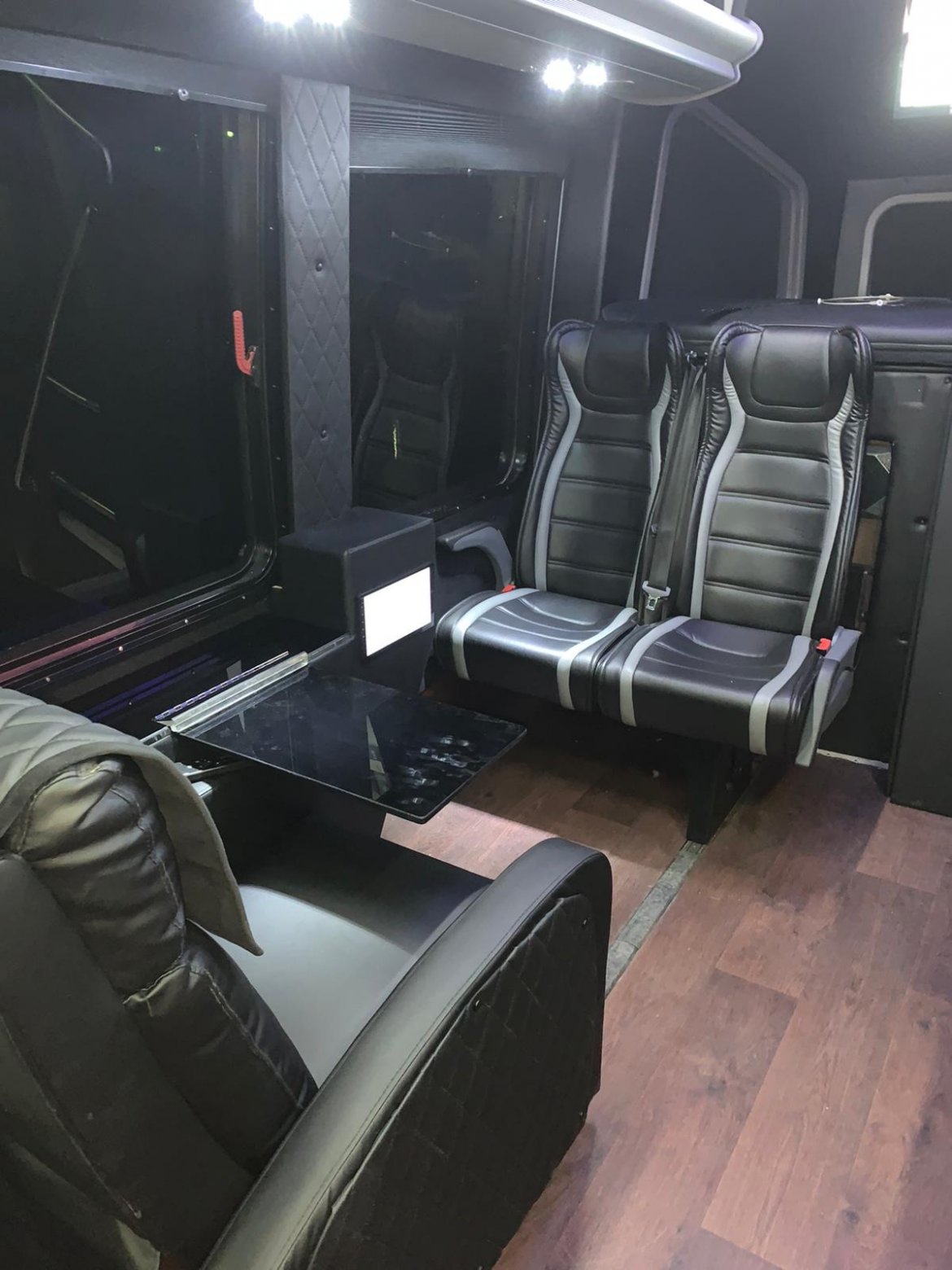 3. One-of-a-kind bus, we`ve customized a 30-person party bus seating and have made the bus to sleep 8 people at the same time. No room was sacrificed for beds. One bed is removable addition, and the second bed is over the driver`s cabin.