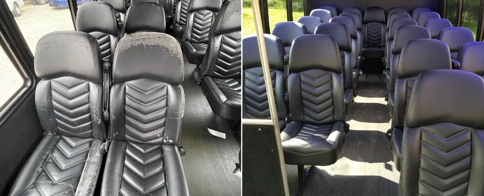 What areas do we serve with bus seat cover repair and upholstery: Our team can ship and do installations of bus and van seat cover repair nationwide. Not only do we have teams in cities like New York, San Francisco, LA, Miami, Dallas, and Boston, but we also have smaller, satellite teams for bus seat cover repair nationwide