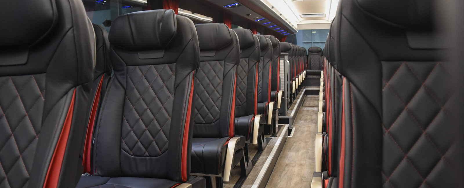 Customizable Vanhool Bus Upholstery: We offer a wide range of options, including plain seat covers, ones with custom diamond stitching, Maybach-style stitching in multiple thread colors, multiple welting options, and various other additions.