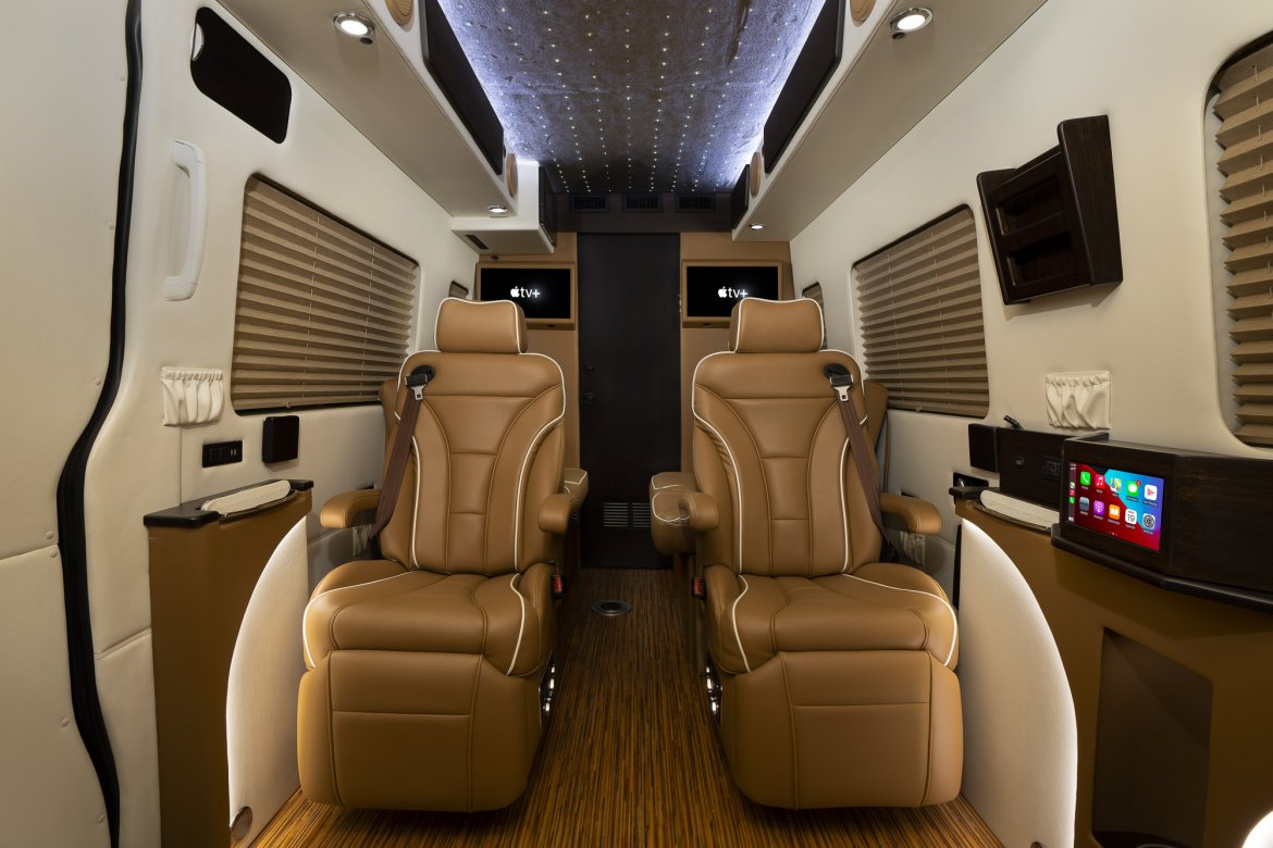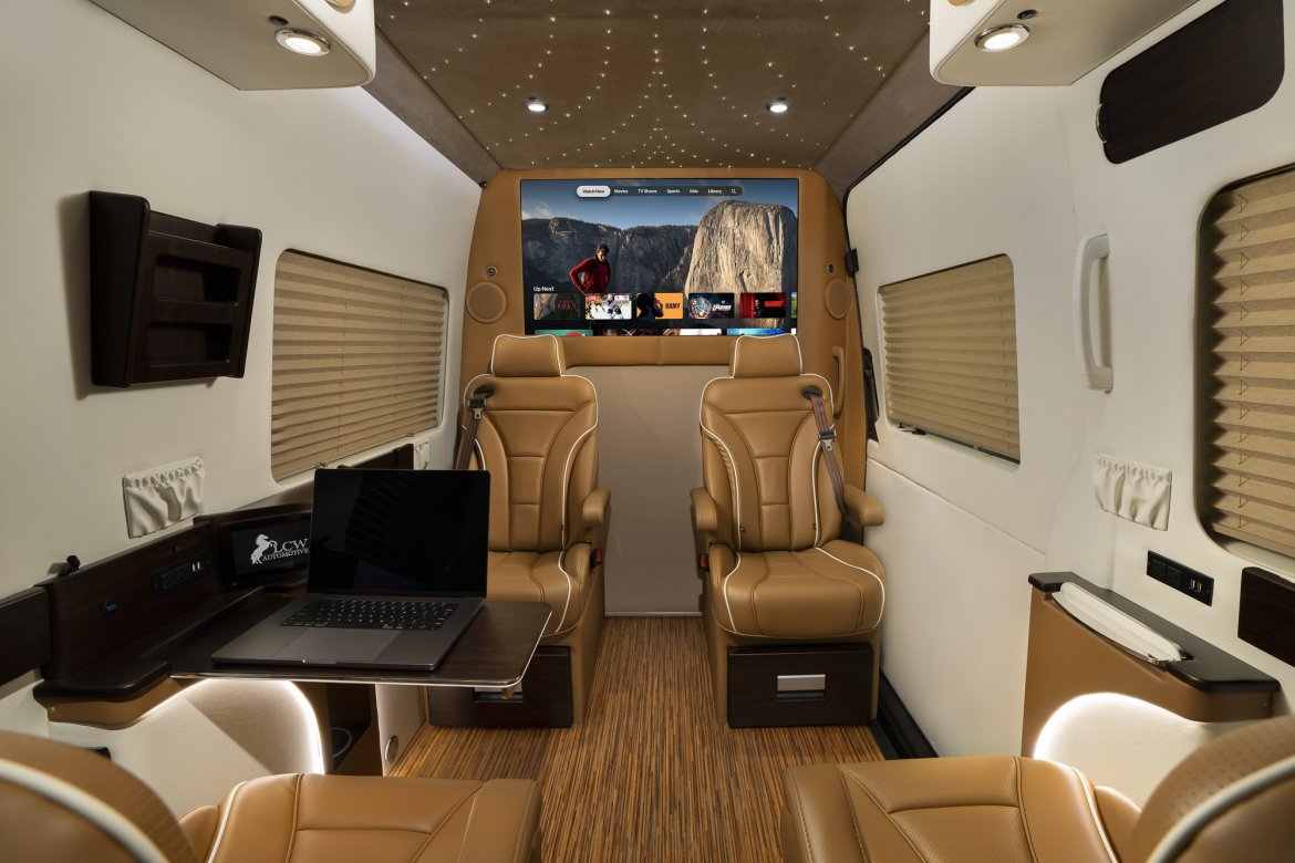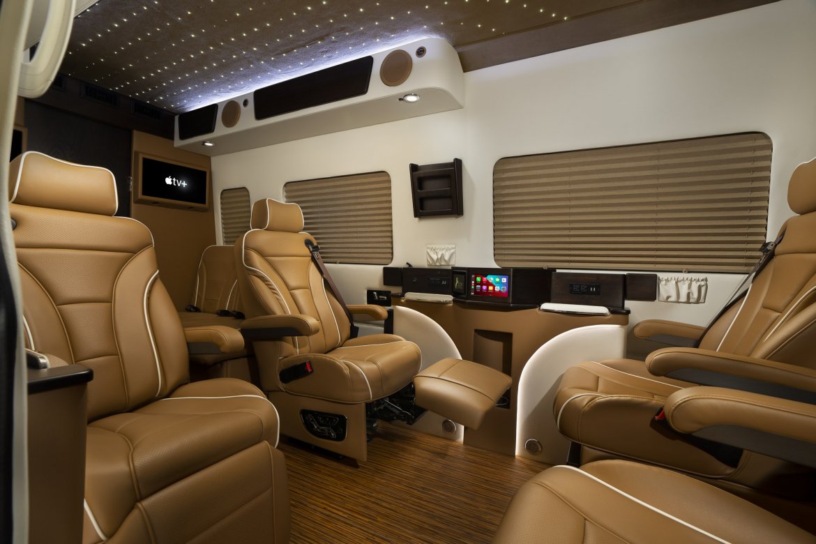 You may have it all with this stunning, limited-edition "Supreme+ Sprinter" manufactured by LCW Automotive Corp. On lengthy travels, opulent orthopaedic captain chairs will keep you warm and comfy; this specific type can accommodate up to 8 passengers. Starting with the pin-dot ceiling, vinyl-covered walls, and embellishments wrapped in actual, genuine wood, luxury stylings are present wherever you look. You will enjoy all the comforts of home thanks to a back deluxe powder room and two independent air conditioning systems. You will certainly feel like you are flying above the sky thanks to all of this technology, which is complemented by Smart TVs, Apple TV, and digital master cabin management. Discover why LCW Automotive has been a market leader for more than 45 years and enjoy luxury like never before.