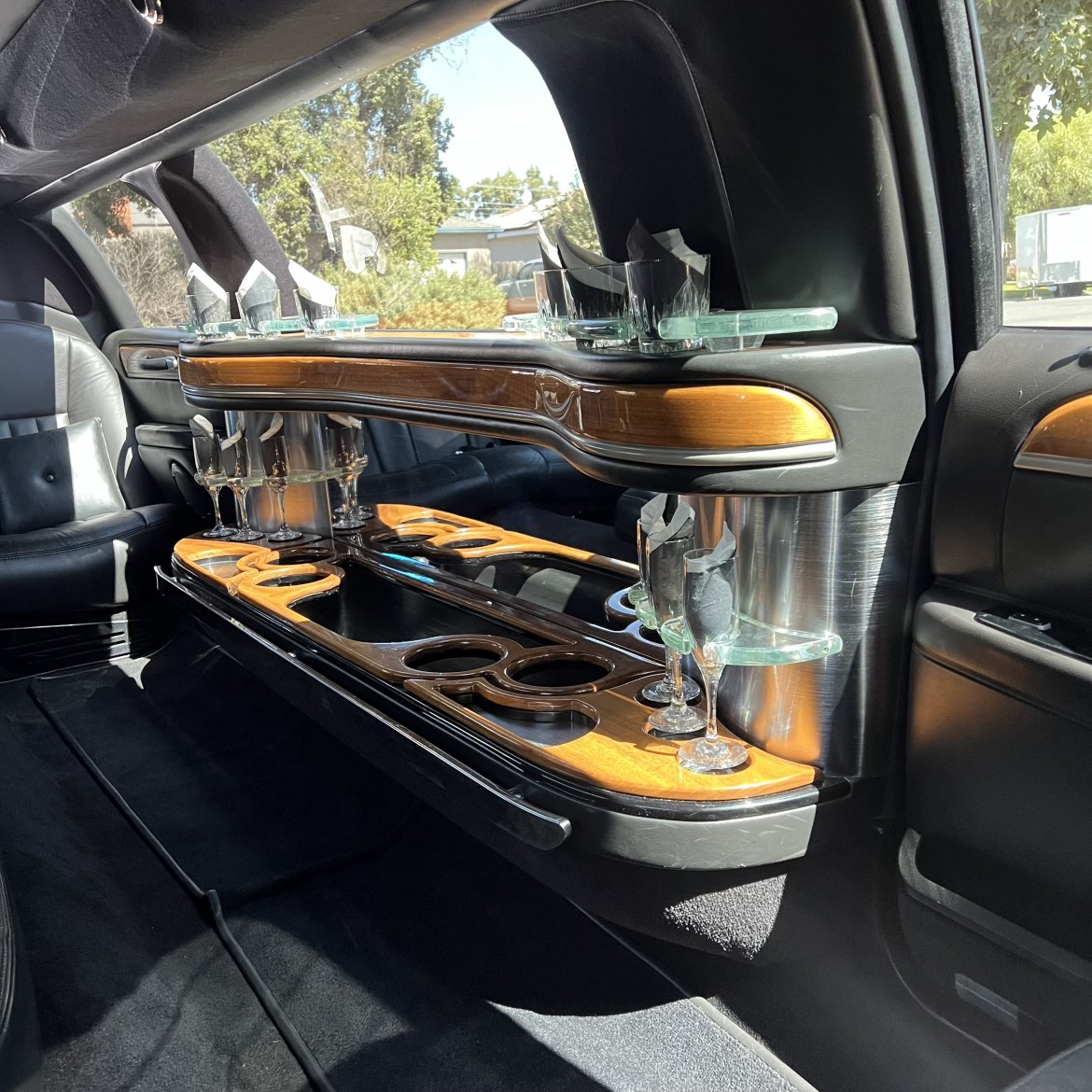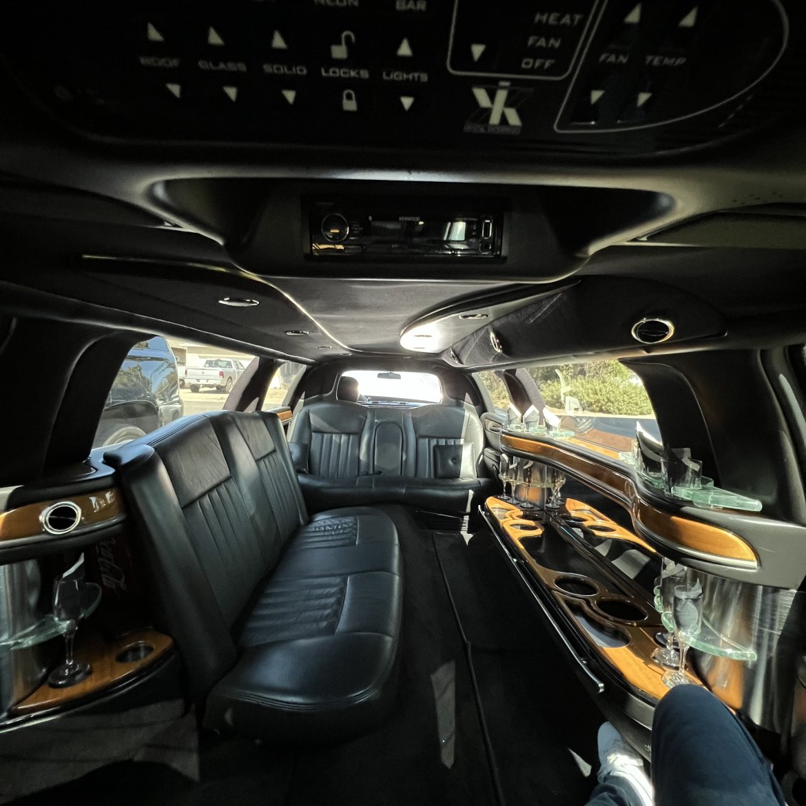 - Passenger Comfort: Tinted Windows, Wet Bar, Fiber Optic Lighting, Premium Sound, A/C Power Outlets, Mood Lighting, Leather Seats, TV/DVD (See also NEW Features, Below!)