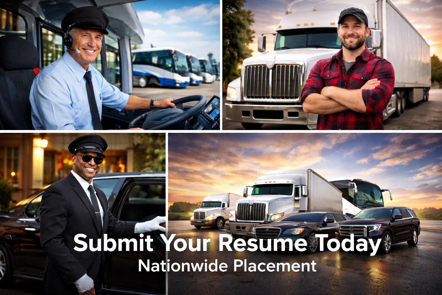 Global Truck, Bus, Limo, & SUV Driving Jobs connects professional drivers with top transportation companies hiring across the United States and Canada. From charter bus and luxury mini bus operators to limousine, black car, box truck, and semi-truck fleets, our platform helps qualified drivers find real driving opportunities faster. Drivers can submit their resume 100% free, with no signup fees, no placement costs, and no hidden charges.